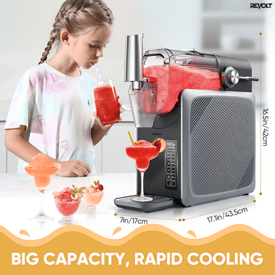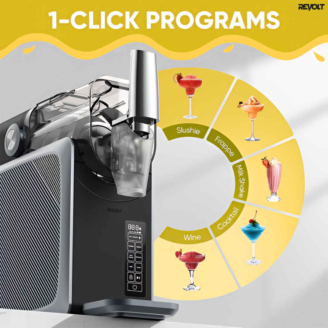 This machine has been a hit at every family gathering! The REVOLT IceCrafter makes everything from margaritas to frappés without needing any ice. The cooling system is powerful, and the texture comes out smooth every time. I love how easy it is to pour and clean — feels like a professional-grade frozen drink maker for home use.