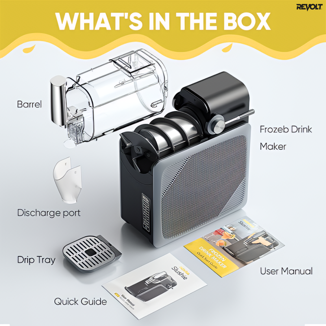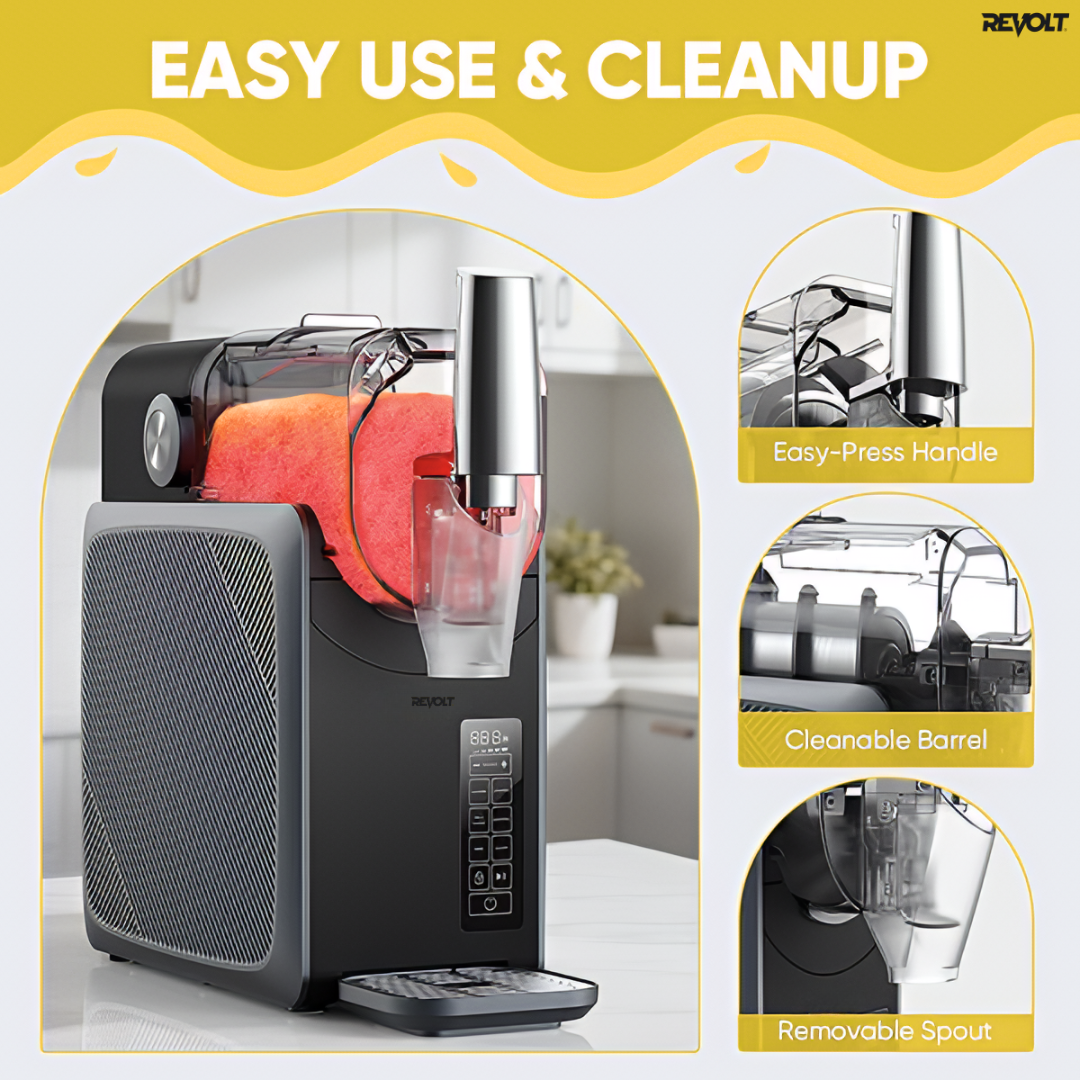 I was amazed by how quickly the REVOLT IceCrafter sets up and gets going! Literally plugged it in, added juice, and had perfect slushies in minutes. The controls are super intuitive, and cleanup is a breeze thanks to the auto-clean feature. It’s now my go-to for quick frozen drinks — sleek, efficient, and totally worth it!