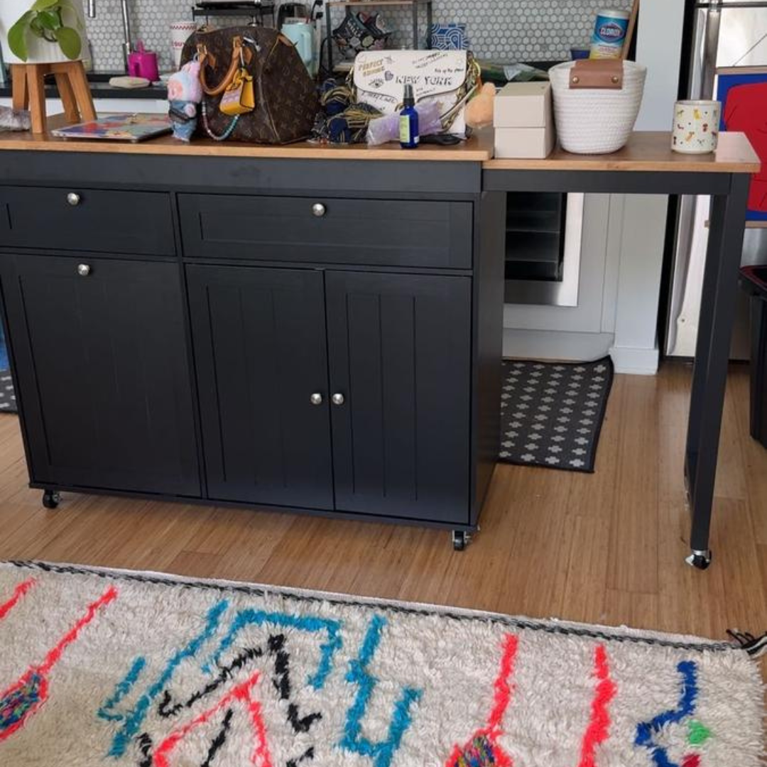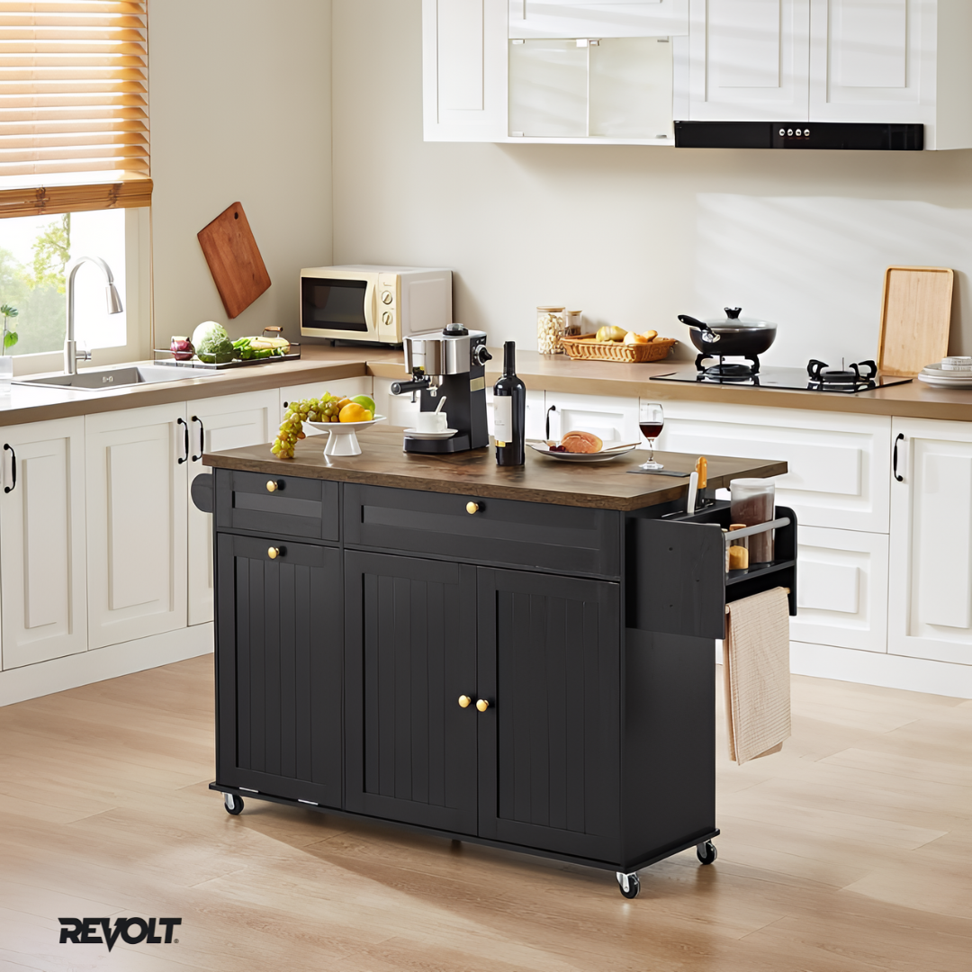 I’m in love with my REVOLT Nexus! The extended drop-leaf is perfect when I need extra space for dining prep or serving food when friends come over. The build quality is solid, the drawers are smooth, and the black finish with the wood top looks so sleek in my kitchen. I can easily roll it around when rearranging the space, and it locks securely in place when I’m using it. It’s both practical and beautiful — exactly what my home needed!