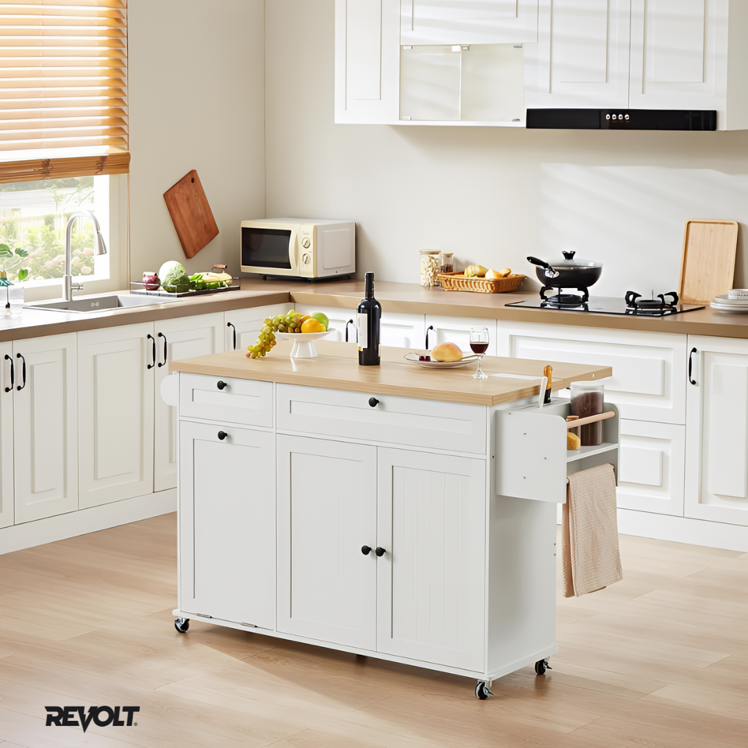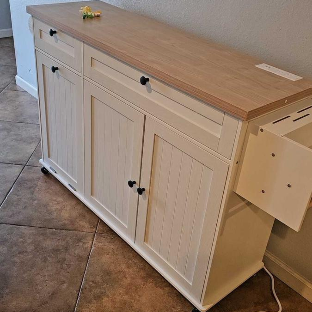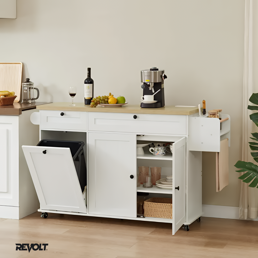 The REVOLT Nexus in white is absolutely stunning! The clean design with the light wood top gives my kitchen a bright, modern touch. I set it up as my coffee station, and it’s been a total game-changer — plenty of storage for mugs, pods, and supplies, plus the power outlet makes it easy to plug in my espresso machine. The drawers glide smoothly, and the drop-leaf gives me extra counter space when I need it. It’s sturdy, elegant, and super functional. Definitely one of the best kitchen purchases I’ve made!