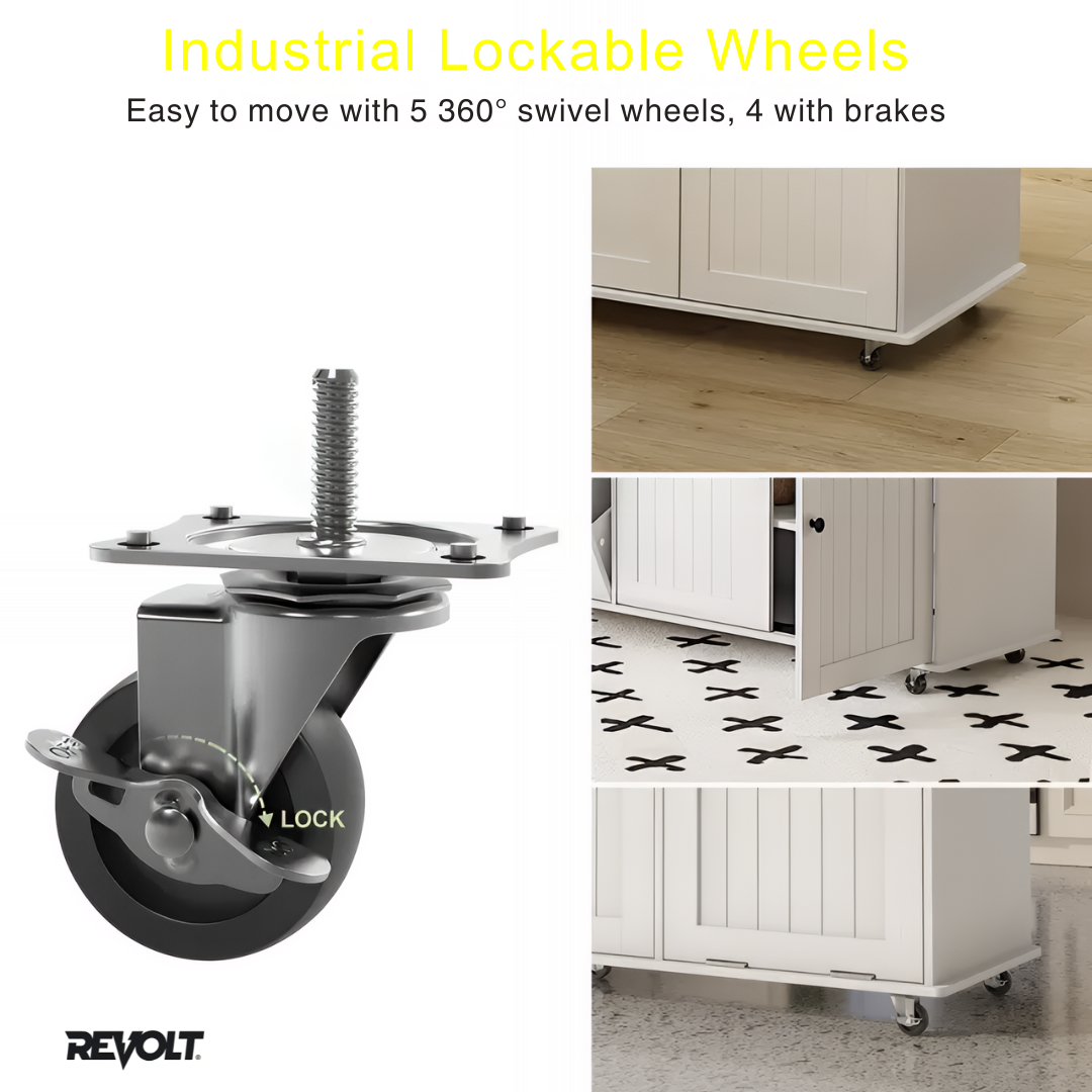 This kitchen island is a total game-changer. The REVOLT Nexus feels sturdy and well-built, and I love how smooth the drawers and cabinet doors are. It adds so much storage without taking up too much room. The wheels glide easily, and the drop-leaf makes it super versatile. It’s the ideal mix of beauty and practicality!