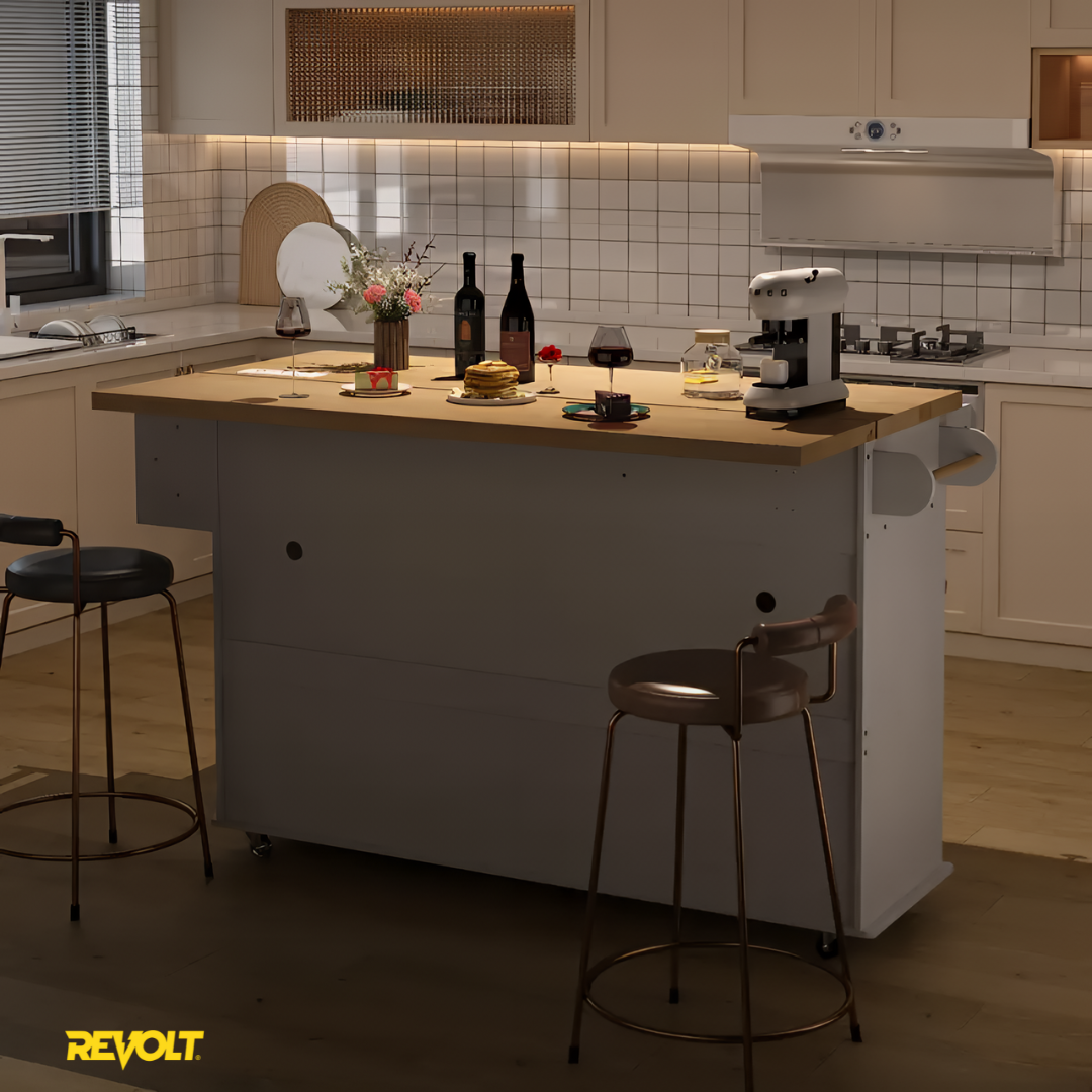 Perfect for homeowners, chefs, and apartment dwellers who value both style and efficiency. Whether you’re prepping meals, hosting guests, or needing extra counter space, the REVOLT Nexus™ adapts seamlessly to any kitchen environment.