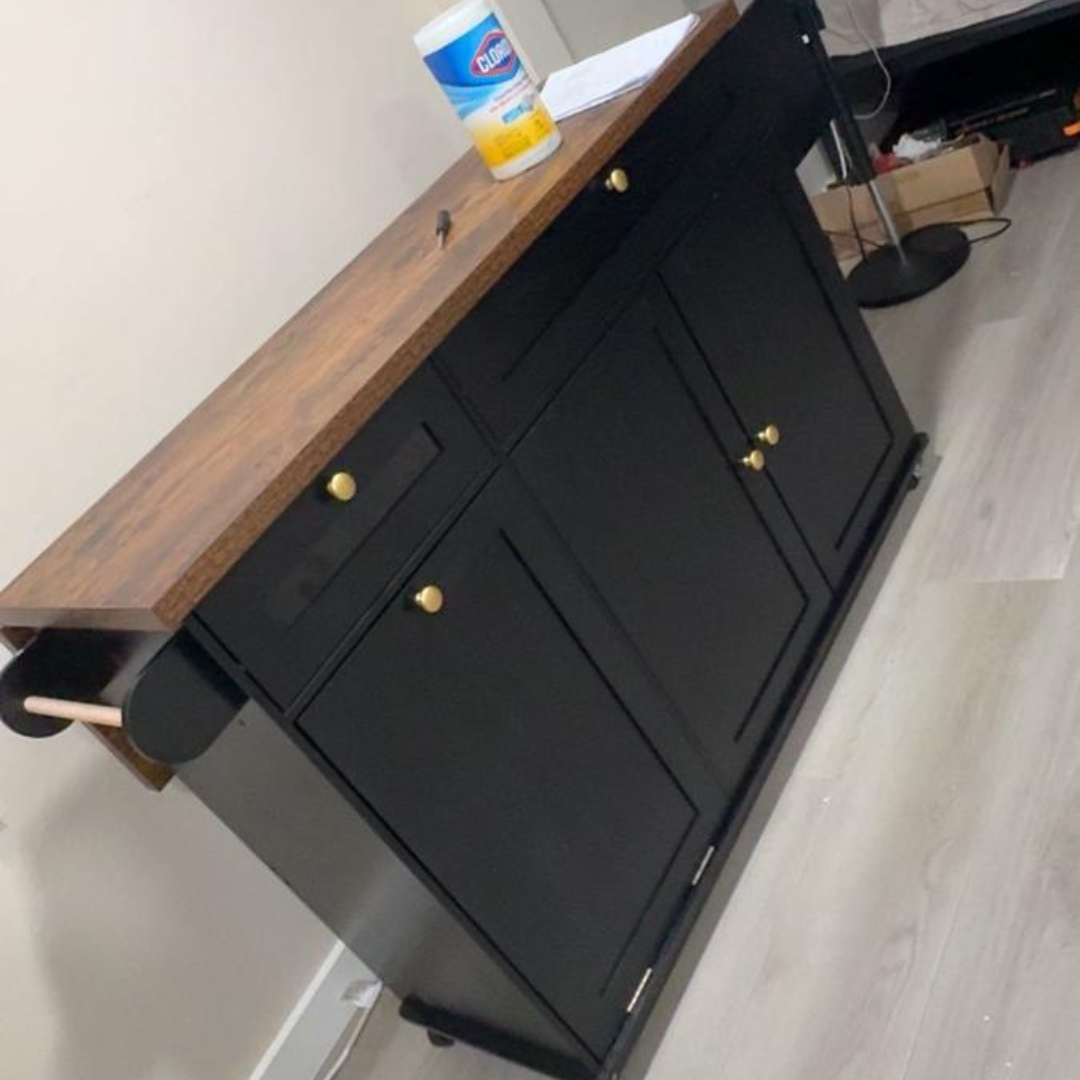 I absolutely love my REVOLT Nexus! The assembly was quick, and the quality exceeded my expectations. The solid wood top feels premium, and the black finish with gold handles gives it such an elegant look. I use it mainly for meal prep, and it’s made my kitchen so much more organized. The drawers and cabinets fit all my utensils perfectly, and the towel rack is super handy. Plus, the wheels make it easy to move around when I need extra space. Highly recommend it to anyone wanting a functional yet stylish kitchen upgrade!
