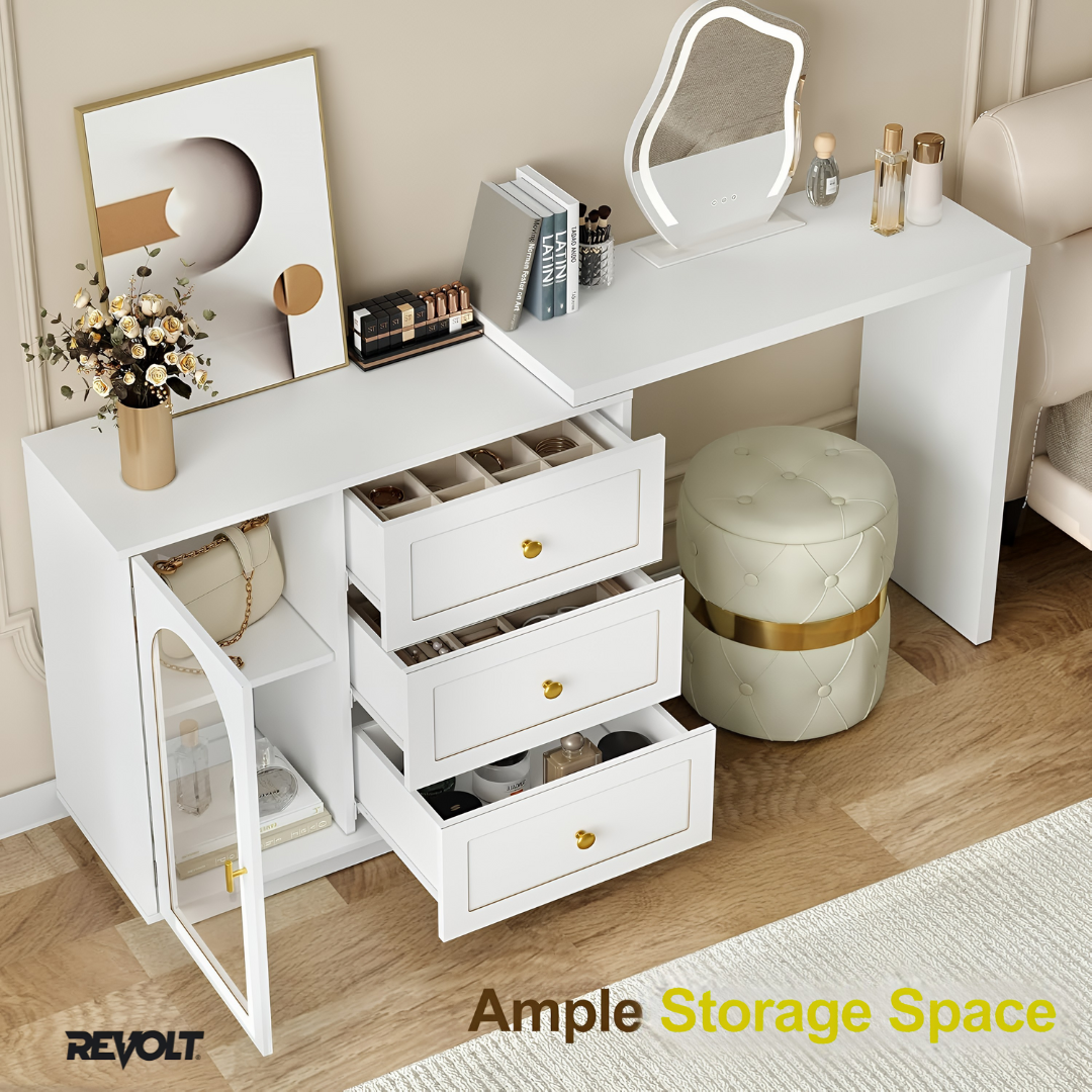 Ample drawer storage: Keeps cosmetics, accessories, and essentials organized.